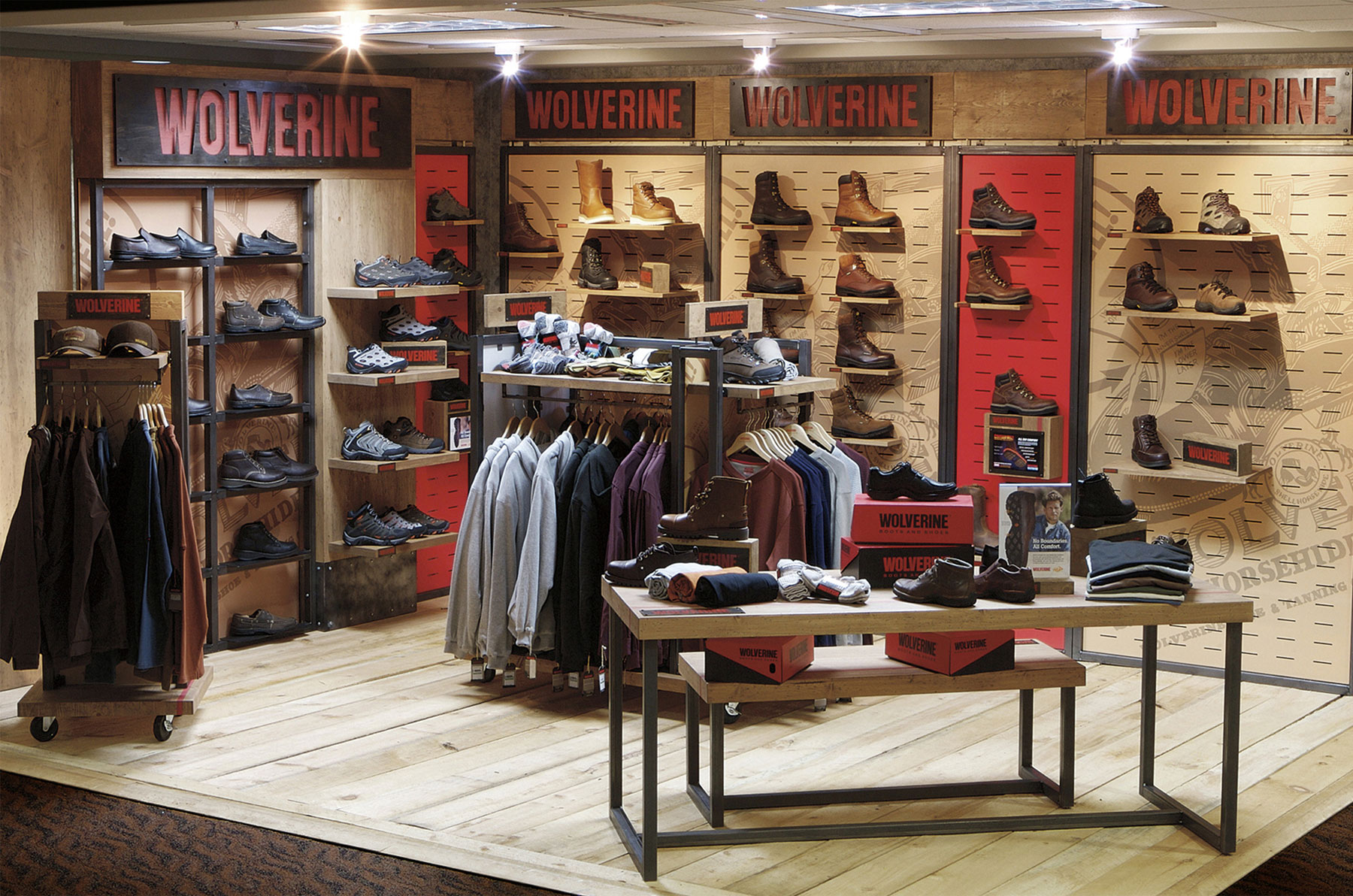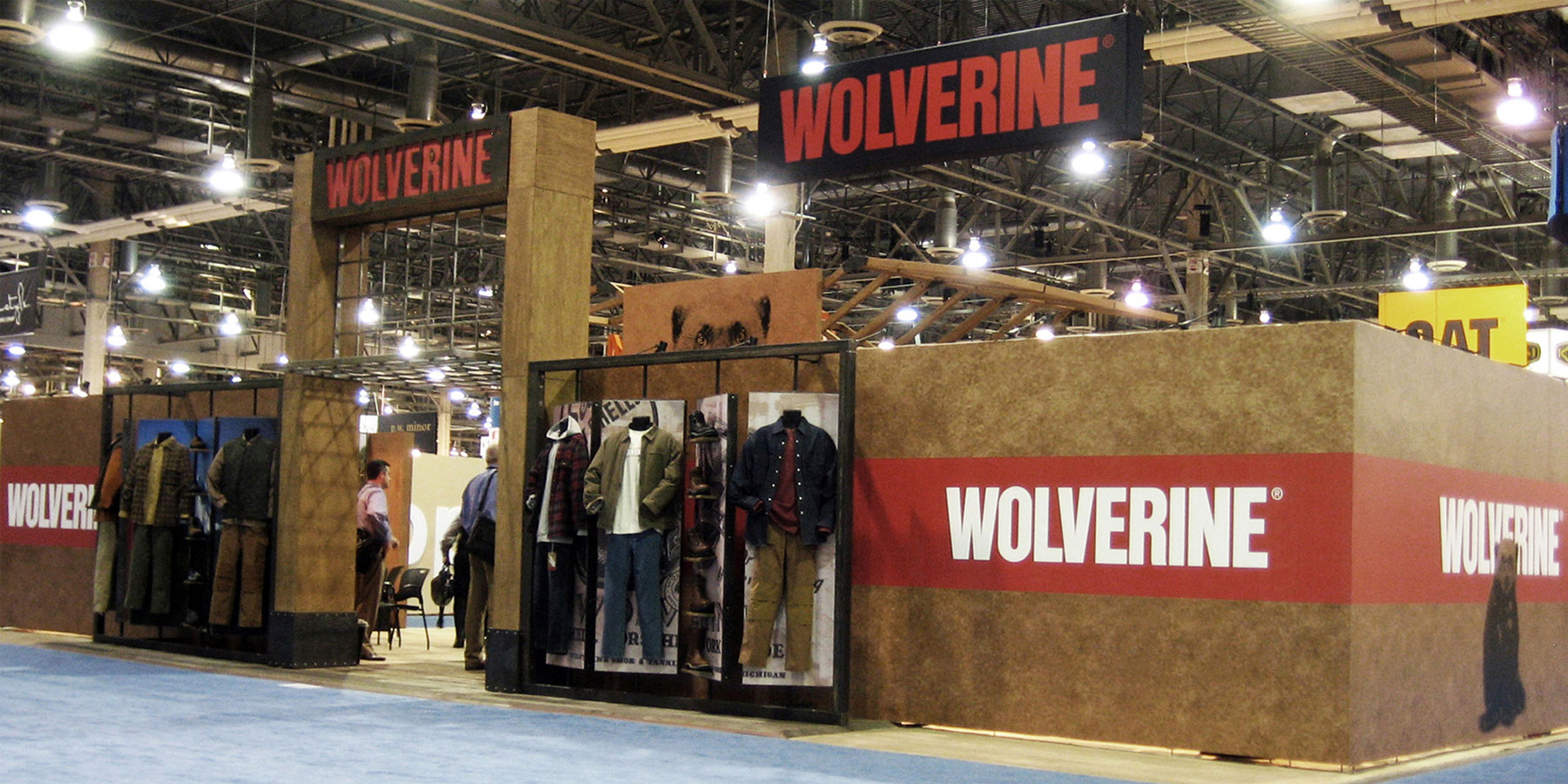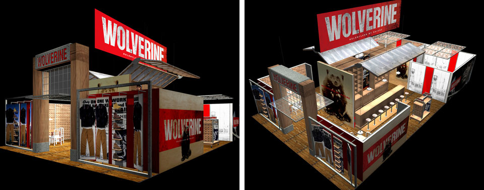 Trade show exterior: Celebrating key brand materials and elements. “Flipper” panels pivot to exhibit footwear and apparel or graphics.