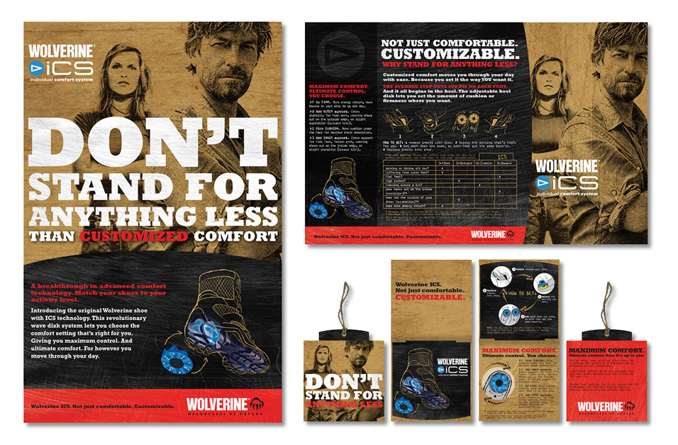 iCS campaign: A fellow who looks like Dirty Harry crossed with Walker Texas Ranger transforms iCS comfort technology from lifeless product feature to personal entitlement—in point of sale, box lid liner, and hang tag system.